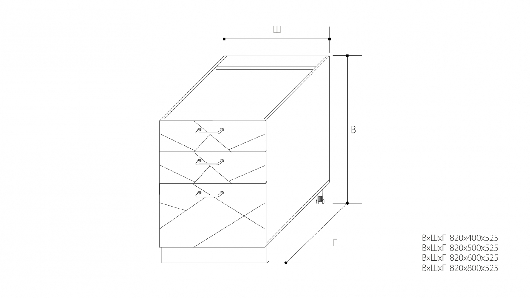 ВхШхГ: 820х800х525 мм.